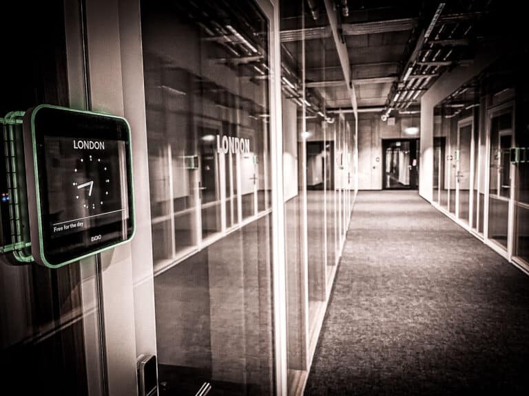 Um die Nutzung der größeren Besprechungsräume im Neubau unseres Kunden zu optimieren, haben wir ein Raumbuchungssystem des Herstellers Evoko installiert. In Verbindung mit einem Exchange-Server ist die Buchung der Räume bequem über Outlook möglich und wird in Echtzeit am Raum angezeigt.